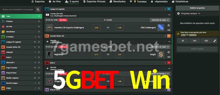 A aposta 5Gbet Win oferece aos jogadores a experiência mais conveniente de apostas em eSports!